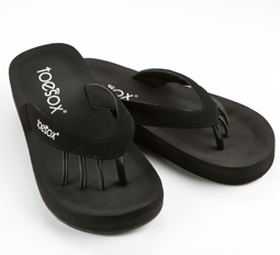 ToeSox Five Toe Sandals encourage toes to spread and are more comfortable than traditional toe spreaders. The molded foot bed of the sandals cushions and supports the foot for added comfort and safety. Encourage your toes to spread for increased foot strength and blood circulation. Four posts naturally align toes and feet for proper bone alignment to help correct a variety of foot, back and leg ailments. Spreading your toes. Available in five colors. Breathable vegan leather strap. Women whole shoe sizes 5-10 (Helpful hint: if you're a half size, round up). |